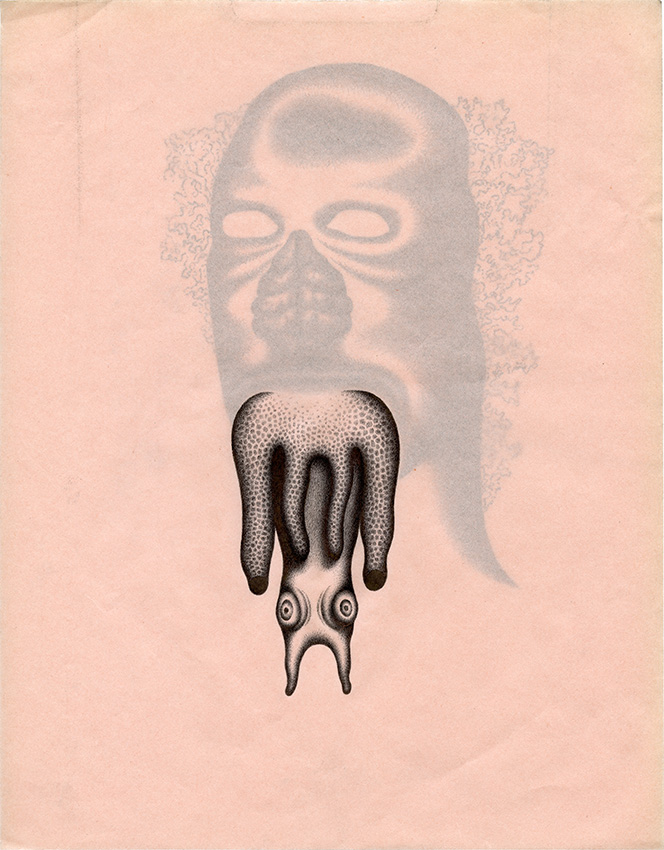 Encre sur papiers pelure blanc et rose superposés