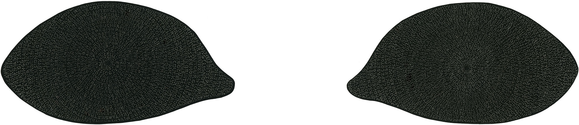 4 dessins, encre argentée sur papier carbone, L 26,5 x H 14 cm chaque.